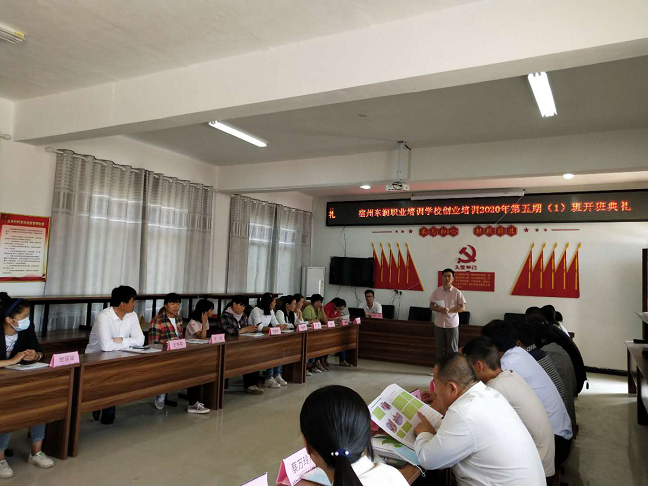 2020年9月19日上午8:30,宿州市東潤職業(yè)培訓(xùn)學(xué)校2020年“SYB創(chuàng)業(yè)培訓(xùn)班第五期”開班典禮在解集鄉(xiāng)云光村黨群服務(wù)中心隆重舉行。上午8:20,全體學(xué)員早早到場,現(xiàn)場秩序井然,學(xué)員熱情高漲。許多學(xué)員都克服了農(nóng)忙沖突依然過來聽課!