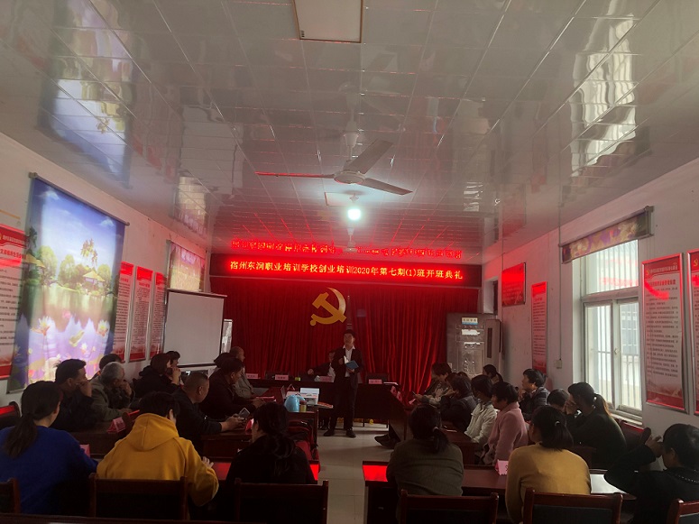 2020年11月1日上午8:30,宿州市東潤職業(yè)培訓學校2020年“SYB創(chuàng)業(yè)培訓班第七期”開班典禮在永安鎮(zhèn)永安村黨群服務中心隆重舉行。上午8:20,全體學員早早到場,現場秩序井然,學員熱情高漲。許多學員還帶來了自己的親朋來旁聽!