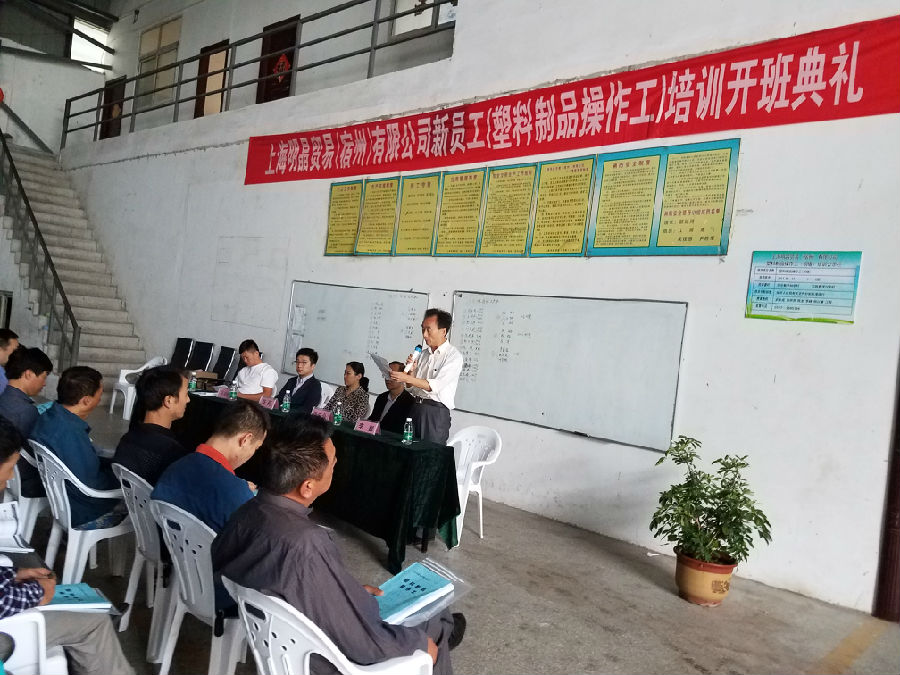 201795上午8點(diǎn),在明晶公司的廠房里隆重地舉行了《塑料制品生產(chǎn)操作工(初級(jí))》的開班典禮。市經(jīng)濟(jì)技術(shù)開發(fā)區(qū)人力資源服務(wù)中心副主任華莉出席了會(huì)議。開班典禮由明晶公司書記王儒主持,公司副總經(jīng)理陳泉屹做了動(dòng)員報(bào)告,表明了對(duì)此次培訓(xùn)的要求和期望,并且要求各位學(xué)員能夠自覺遵守紀(jì)律,嚴(yán)格執(zhí)行考勤制度。