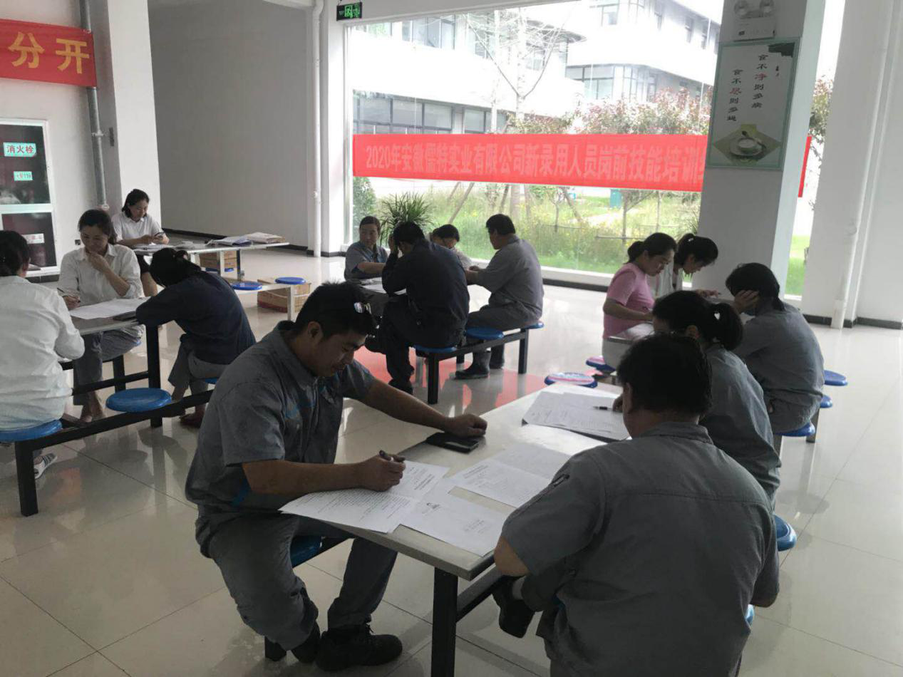 在安徽儒特實業(yè)有限公司和宿州東潤職業(yè)培訓(xùn)學(xué)校的緊密合作下,企業(yè)新錄用人員崗前技能培訓(xùn)圓滿結(jié)束,于2020615日在安徽儒特實業(yè)有限公司召開結(jié)業(yè)考試典禮。