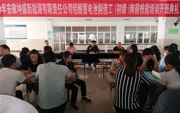 安徽坤盛新能源有限責任公司鉛酸蓄電池制造工(初級)崗前技能培訓班開班典禮,于2020年9月16日下午4時在安徽坤盛公司隆重舉行 。