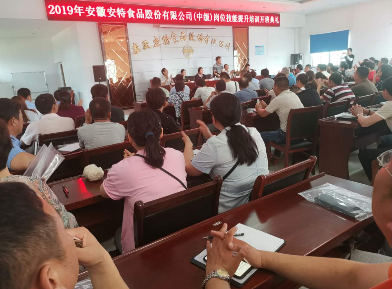 安徽安特食品股份有限公司酒精釀造工(中級)崗位技能提升培訓(xùn)班開班典禮于2019年7月5日上午9時(shí),在安特公司培訓(xùn)教室隆重舉行。