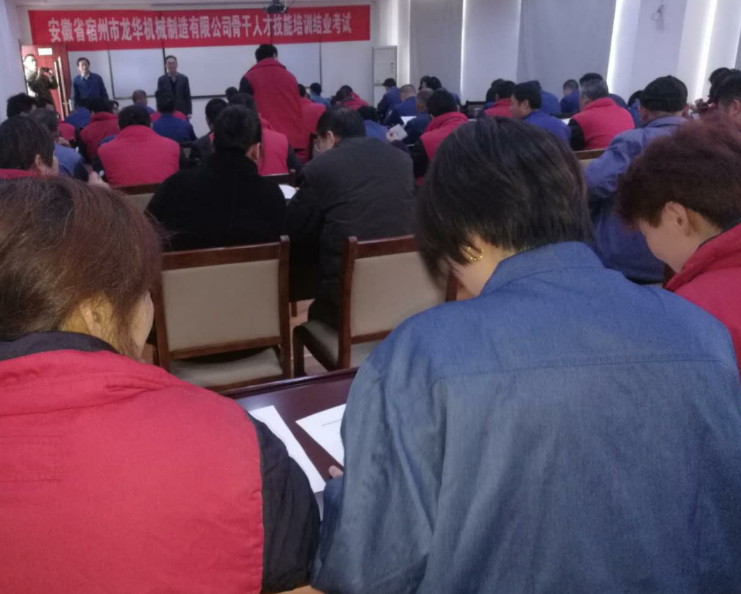 2019年3月29日下午14時(shí),安徽省宿州市龍華機(jī)械制造有限公司骨干人才技能培訓(xùn)班結(jié)業(yè)考試在安徽龍華機(jī)械公司培訓(xùn)室舉行,龍華公司李輝副總經(jīng)理親臨考場(chǎng)監(jiān)考。
