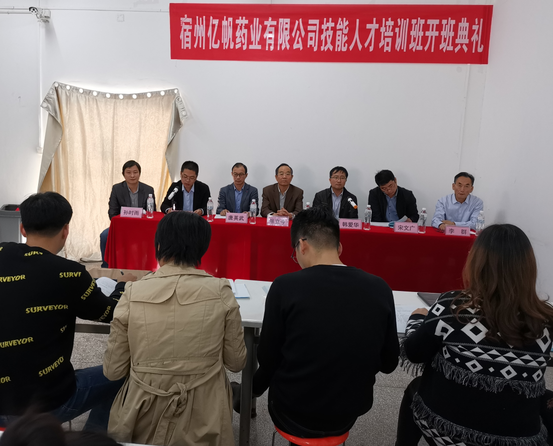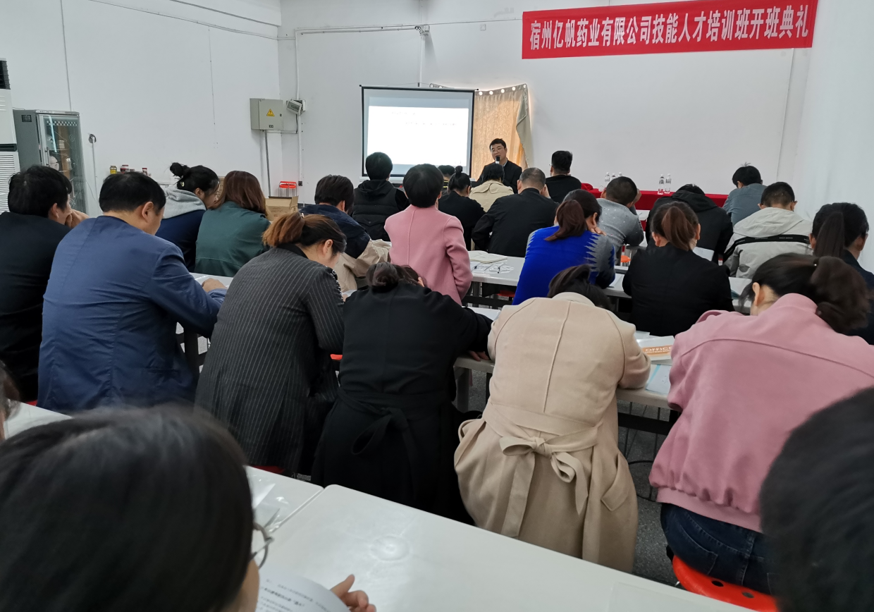 為了深入貫徹安徽省《關(guān)于進(jìn)一步加強企業(yè)人才工作的意見》和宿州市《關(guān)于在全市重點民營企業(yè)加強人才服務(wù)工作的通知》及《宿州市開展企業(yè)需求實用人才培訓(xùn)實施的意見》,2019年10月18日下午16時,宿州億帆藥業(yè)有限公司實用技能人才培訓(xùn)班開班典禮,在宿州億帆藥業(yè)有限公司隆重召開。
