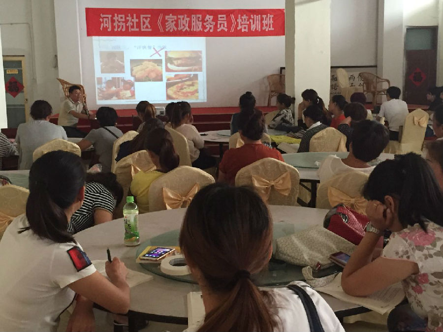 此次培訓(xùn)時(shí)間緊任務(wù)重,我校的老師結(jié)合實(shí)際,深入淺出為她們進(jìn)行了理論教學(xué)與實(shí)操訓(xùn)練,大家對(duì)老師的精彩講授和實(shí)操示范教學(xué)報(bào)以陣陣掌聲。按照國(guó)家職業(yè)技能培訓(xùn)大綱要求,培訓(xùn)班為期15天,共120課時(shí)。其主要課程有:與家政服務(wù)工作相適應(yīng)的基本禮儀、職業(yè)操守、就業(yè)指導(dǎo)、家庭禮儀、家居保潔、烹調(diào)知識(shí)、老人及孕、產(chǎn)婦起居護(hù)理、嬰幼兒起居護(hù)理、家庭常用護(hù)理、疾病應(yīng)急護(hù)理。通過(guò)系統(tǒng)規(guī)范的家政服務(wù)培訓(xùn),提高家政服務(wù)員的理論知識(shí)和實(shí)際操作技能,培訓(xùn)結(jié)束后,將由市職業(yè)技能鑒定中心統(tǒng)一考試,考試合格者將頒發(fā)國(guó)家人社局統(tǒng)一印制的職業(yè)資格證書(shū),并可持證上崗。在培訓(xùn)現(xiàn)場(chǎng),學(xué)員們學(xué)習(xí)熱情高漲,培訓(xùn)教師設(shè)計(jì)的討論、設(shè)問(wèn)、練習(xí)、操作示范等多樣化的教學(xué)方式,激發(fā)了學(xué)員濃厚的學(xué)習(xí)興趣。不少人的筆記本上還密密麻麻地記著課堂學(xué)習(xí)筆記,專業(yè)教師的細(xì)致講授和現(xiàn)場(chǎng)技術(shù)指導(dǎo)更是受到了參訓(xùn)人員的歡迎。課后好學(xué)的學(xué)員們紛紛就生活中遇到的跟課程相關(guān)的問(wèn)題請(qǐng)老師做了專門(mén)的指導(dǎo)。