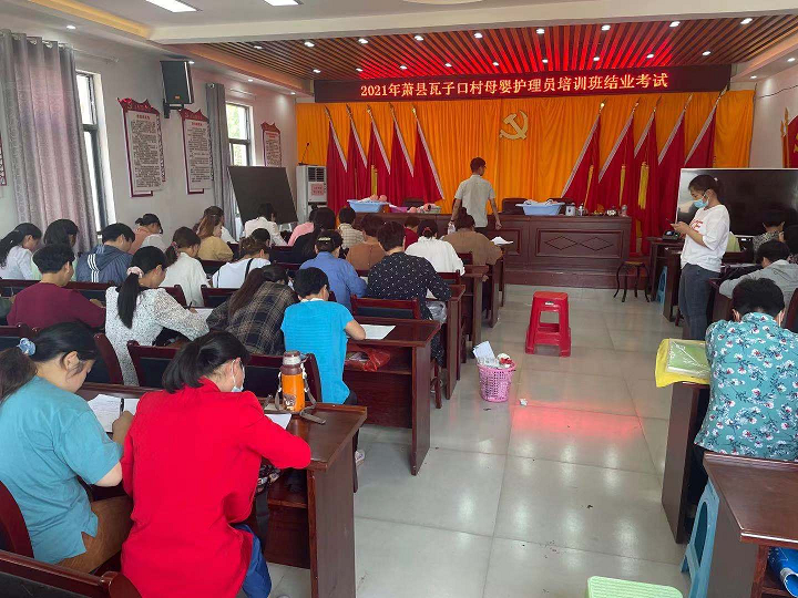 2021年5月10日上午,瓦子口母嬰護(hù)理員培訓(xùn)班結(jié)業(yè)考試在瓦子口村委會隆重舉行。