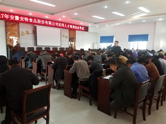 2017年12月9日上午,我們東潤職業(yè)培訓(xùn)學(xué)校承辦的安徽安特食品股份有限公司班組長以上管理人才培訓(xùn)班結(jié)業(yè)考試在公司培訓(xùn)教室隆重舉行,參加的有東潤職業(yè)培訓(xùn)學(xué)校綜合培訓(xùn)部以及參與培訓(xùn)的80名安徽安特食品股份有限公司學(xué)員。