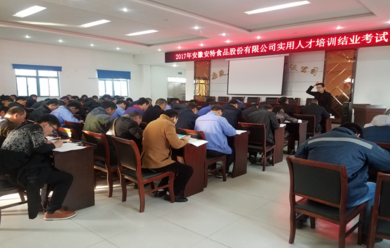 2017年12月9日上午,由我們東潤(rùn)職業(yè)培訓(xùn)學(xué)校承辦的安徽安特食品股份有限公司班組長(zhǎng)以上管理人才現(xiàn)代管理技能培訓(xùn)項(xiàng)目在安特食品公司培訓(xùn)教室舉行結(jié)業(yè)考試并圓滿(mǎn)結(jié)束。