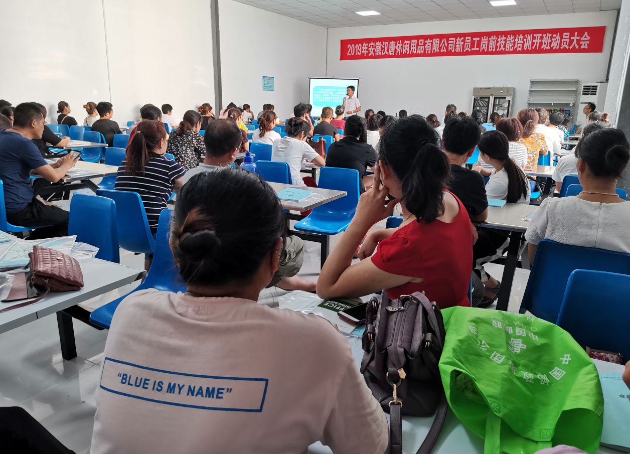 安徽漢唐休閑用品有限公司金屬家具生產(chǎn)操作工新員工崗前技能培訓(xùn)班開班動員大會于2019年6月14日上午9時,在漢唐公司隆重舉行。
