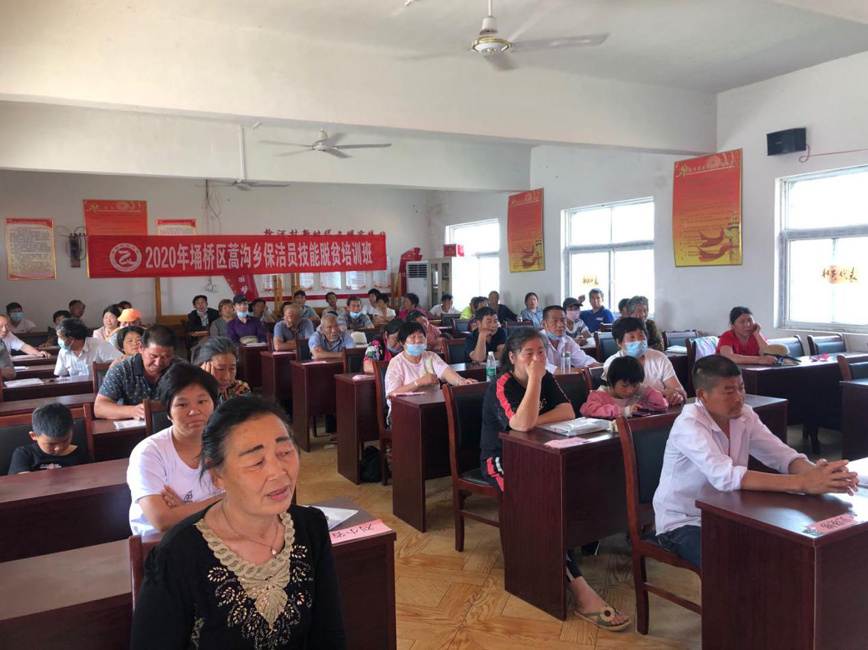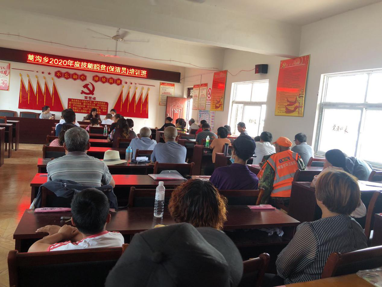 在區(qū)人社局和蒿溝鄉(xiāng)社保所的大力支持和幫助下,蒿溝鄉(xiāng)2020年技能脫貧保潔員培訓班于5月9日正式開班。