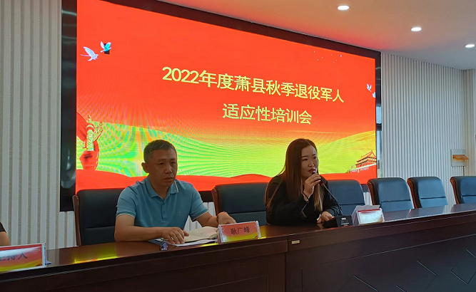 為切實(shí)做好2022年度退役軍人適應(yīng)性培訓(xùn)工作,落實(shí)新時(shí)代退役軍人就業(yè)創(chuàng)業(yè)工作、提高職業(yè)技能培訓(xùn),蕭縣退役軍人事務(wù)局連同宿州東潤(rùn)職業(yè)技能培訓(xùn)學(xué)校于9月19日舉辦2022年度歡迎退役軍人返鄉(xiāng)暨退役士兵適應(yīng)性培訓(xùn)會(huì)議。