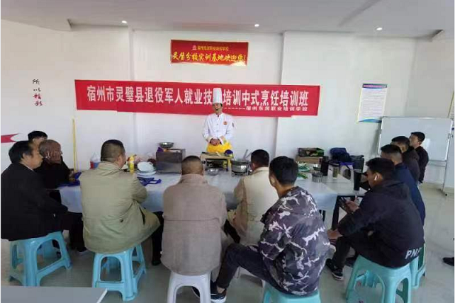 為做好退役軍人就業(yè)創(chuàng)業(yè)工作,市退役軍人事務(wù)局、靈璧縣退役軍人事務(wù)局與宿州東潤職業(yè)培訓(xùn)學(xué)校組織開展退役軍人就業(yè)技能中式烹調(diào)師培訓(xùn)活動。本次培訓(xùn)為期三個月,共有110名退役士兵參加培訓(xùn)。