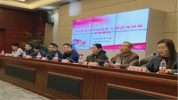 宿州市退役軍人事務(wù)局戴安君副局長、宿州市人社局就業(yè)管理中心沈飛主任、宿州市經(jīng)開區(qū)社會(huì)事業(yè)局時(shí)淑芳局長、宿州市經(jīng)開區(qū)人力資源服務(wù)中心華莉主任、宿州市人社局創(chuàng)業(yè)指導(dǎo)科高駿科長、宿州市退役軍人事務(wù)局就業(yè)創(chuàng)業(yè)科宋宏偉主任、宿州學(xué)院原副校長、教授、宿州東潤職業(yè)培訓(xùn)學(xué)校張立金校長等領(lǐng)導(dǎo)出席參加此次開班典禮,宿州東潤職業(yè)培訓(xùn)學(xué)校黨支部委員培訓(xùn)中心主任胡麗麗主持會(huì)議,共計(jì)60多名退役軍人參加了此次開班典禮。